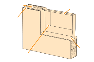 • каркас - клеёный массив хвойных пород + дуб